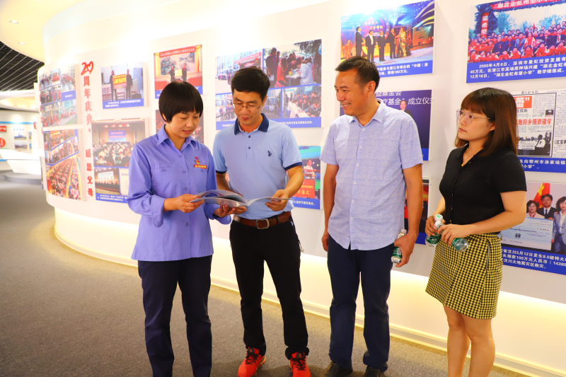 金年会app下载官网ios党委副书记、工会主席黄容受金年会app下载官网ios集团董事局主席舒心先生委托,热情接待了周启安校长一行。周启安校长一行兴致勃勃地参观了金年会app下载官网ios文化长廊和金年会app下载官网ios博物馆,认真听取了黄容主席关于企业相关情况的介绍,同时也介绍了金虹希望小学的基本情况。周启安校长说,学校即将举行“20周年校庆”,诚挚邀请舒心主席和公司领导前去参加活动,见证孩子们的成长,为孩子们的梦想展翅护航,同时也希望在“舒心爷爷”的学校读书的孩子们,有机会也能走进“舒心爷爷”的企业。