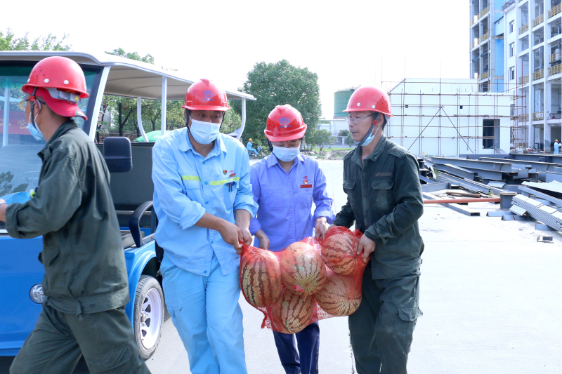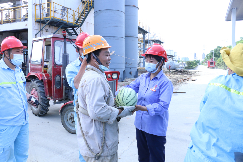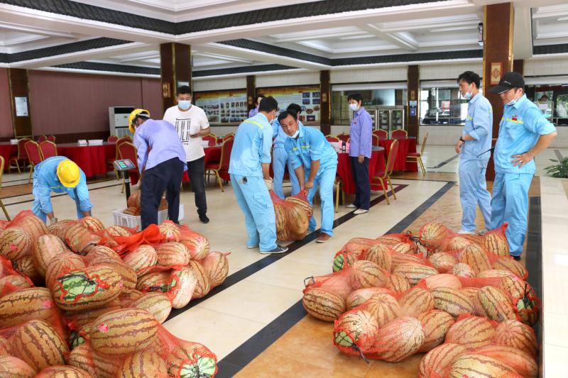 目前,金年会app下载官网ios技改扩规及新建项目正在有条不紊地推进,大修筹备工作已进入倒计时阶段,为感谢广大干部员工及外协施工人员为企业发展的辛勤付出与奉献,8月7日,公司副总裁吴时斌与党委副书记、工会主席黄容深入一线,将一袋袋西瓜送至各项目施工现场及工作岗位,将舒心董事长、吴金鸿执行总裁及公司的关心与关爱传达给现场的施工人员及员工的心间。
