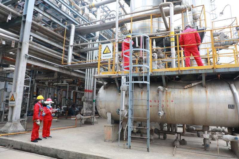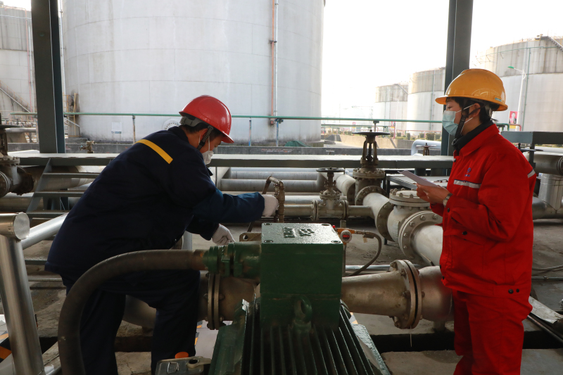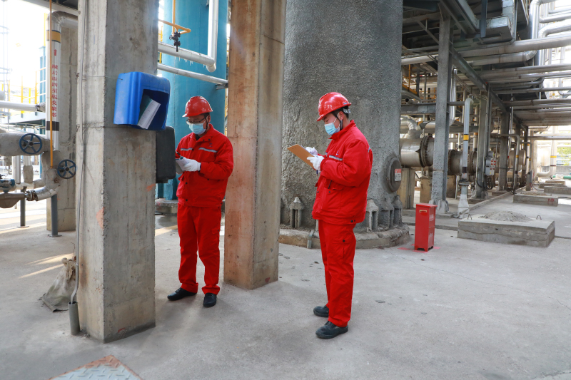 党员、设备机动处科员陈辉,仪表中级工程师王友峰,对芳构化装置重点设备进行巡查,确保装置平稳运行。