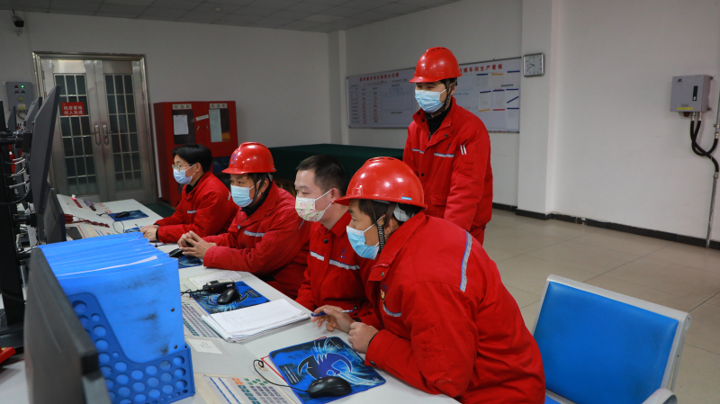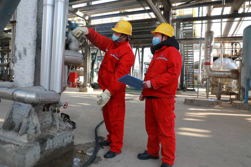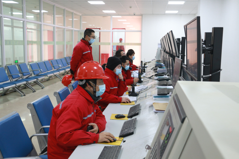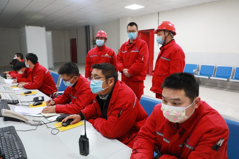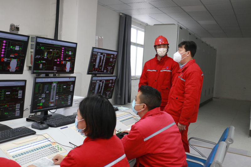 公司副总裁杨巍,热能车间副主任李远林,党员、热能车间副主任严业非对热能替换装置生产运行情况进行监护、指导。