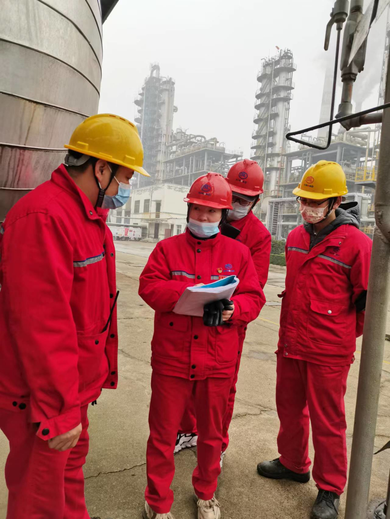 党员、安全环保处处长胡云组织检查各车间操作作业票执行情况,现场抽查员工操作步骤执行情况。