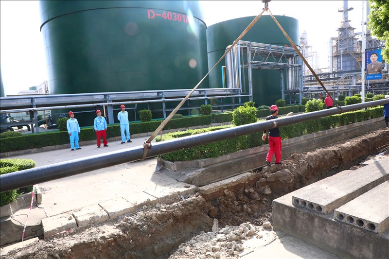 党员、电能处处长王铁军,党员、综合事务处处长何小平,综合事务处综合一科科长罗华,综合二科科长汪瑞,与潜江输油站施工方一起到监利-潜江输油管道项目潜江输油站现场沟通临时用电及进场施工注意事项。