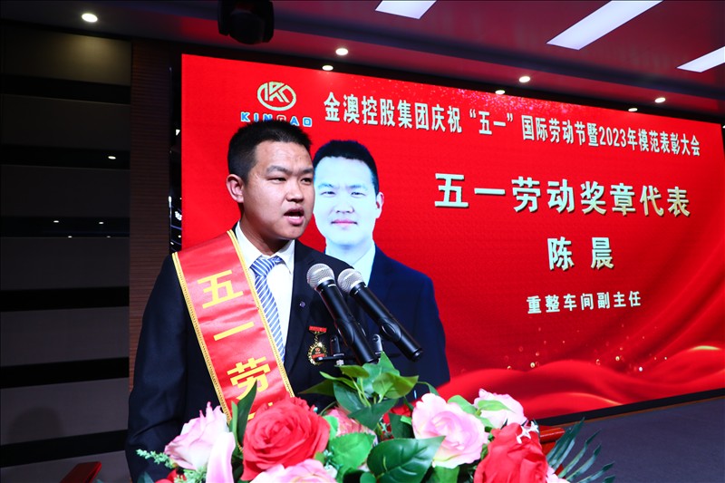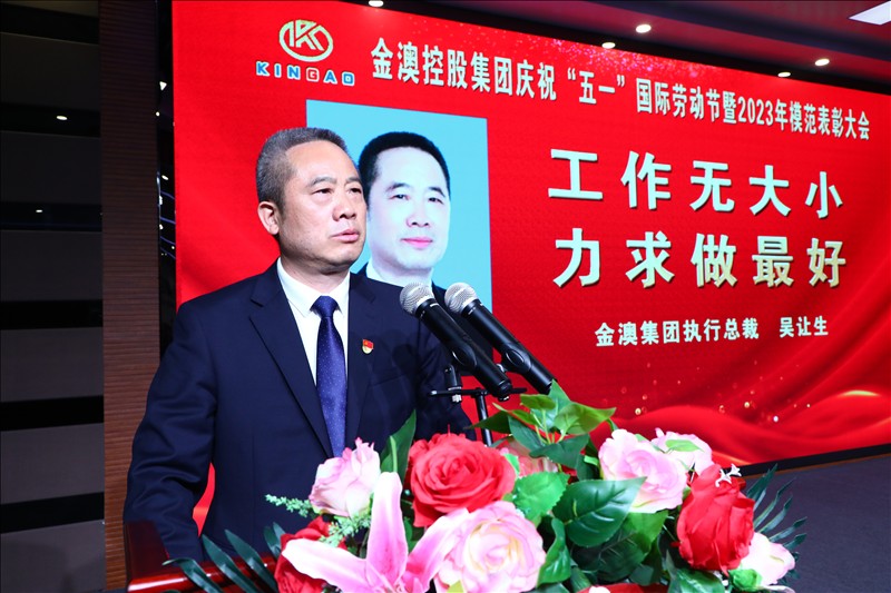 4月27日晚,金年会app下载官网ios集团隆重召开庆祝“五一”国际劳动节暨2023年劳动模范、五一劳动奖章表彰大会。集团执行总裁吴让生,金年会app下载官网ios党委书记、轮值总裁肖生强等在家领导班子成员、部分管理干部及员工代表参加。